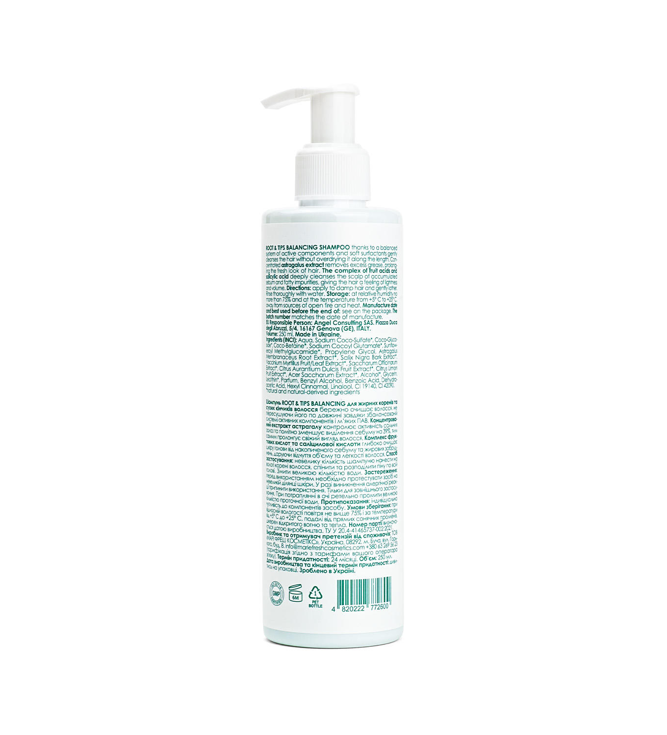 • Salicylic acid (BHA) from willow bark extract prevents dandruff and provides prevention of other skin diseases, cleanses pores and blocked follicles, ensuring the active growth of healthy and shiny hair with weightless clean roots