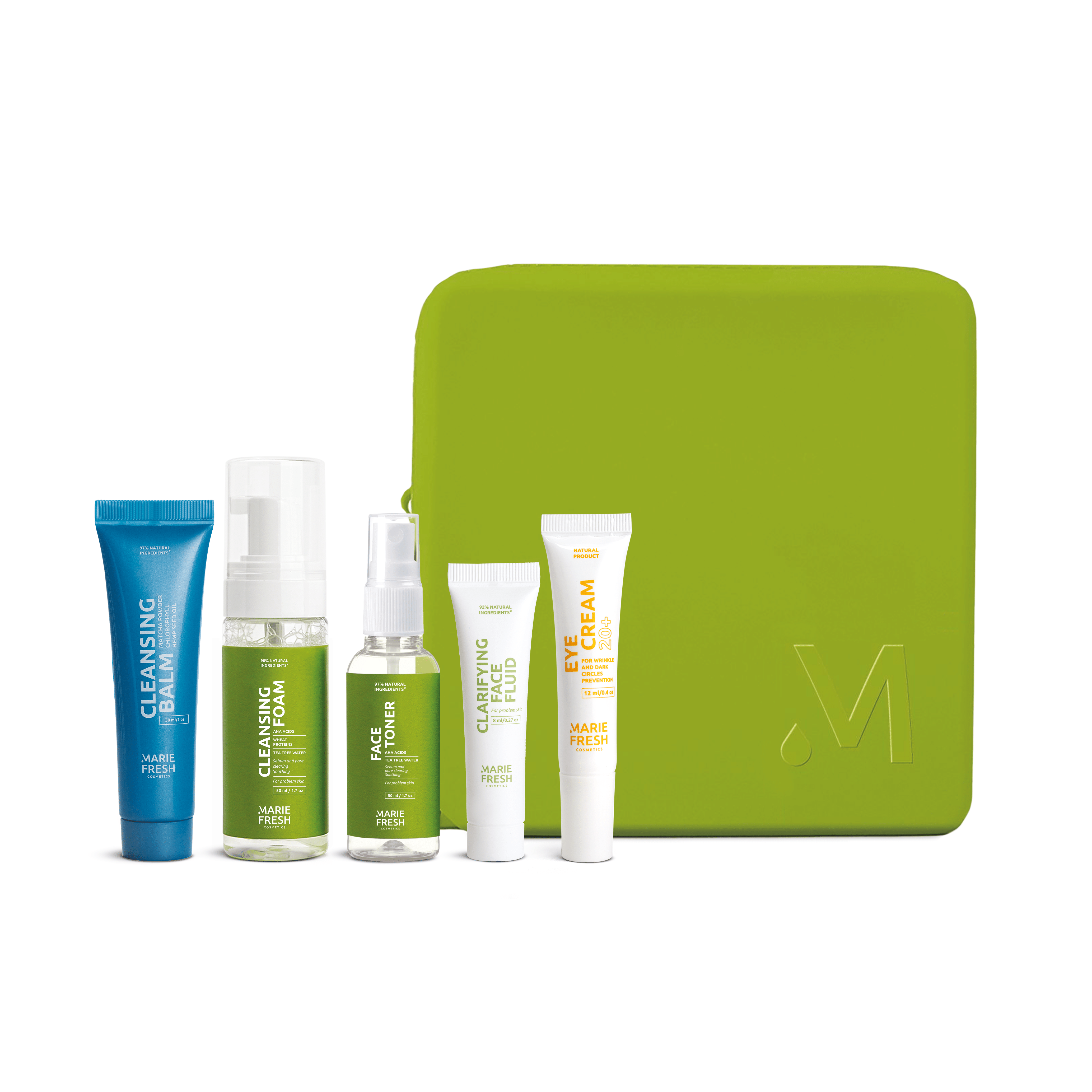 Travel set це комплексний догляд для обличчя з проблемною та схильною до висипань шкірою. Його компактний формат чудово підійде для знайомства з брендом та ідеальний супутник у подорожах. У наборі зібрано все необхідне для повноцінного щоденного догляду: делікатне очищення, тонізація, зволоження. Засоби у мініверсіях у стильній силіконовій косметичці легко помістяться в багаж або ручну поклажу, а їхнього об'єму вистачить на багаторазове використання.